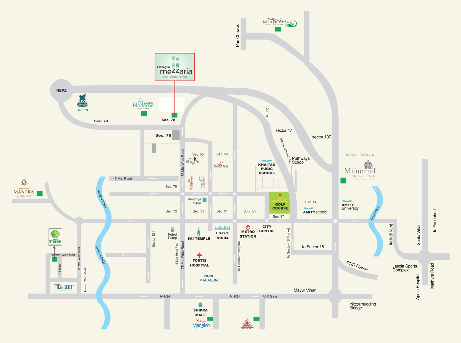 Mahagun Mezzaria is an exclusive Project located in Sector 78, Noida Central and well connected by major road(s) like Dadri Road, Sector 71-79 Link Road, Greater Noida West Link Road. This project has been developed by Mahagun who are one of the reputed developers in the Noida. The Project current status is Ready to Move. The project has 8 Towers with 718 Units.