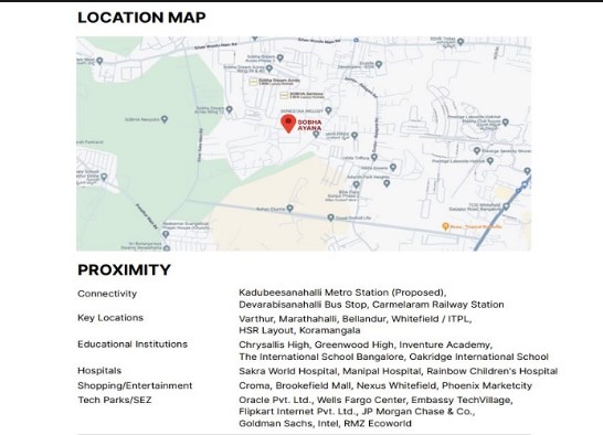 Sobha Ayana is a new residential project developed at Panathur Main Road Bangalore, one of the emerging locales favored for its best infrastructure and connectivity. Panathur Main Road, where Sobha Ayana lies, is gradually developing as a residential area.