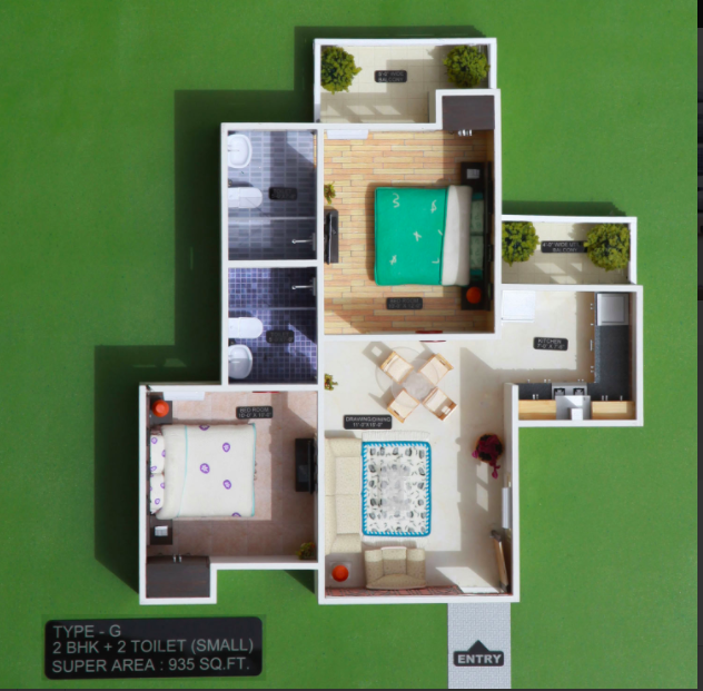 | 2 BHK | 935 Sq.Ft | 10 k | View Floor Plans | View Details |